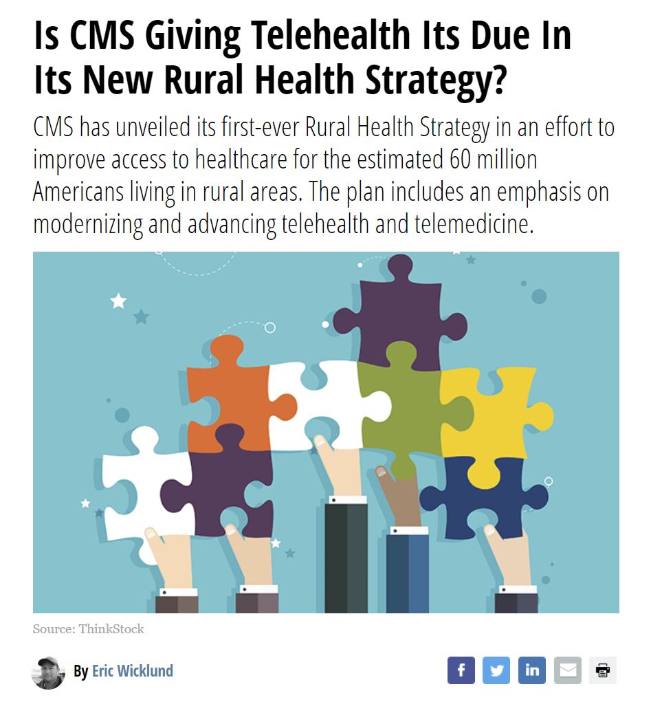 CMS Giving Telehealth Its Due In Its New Rural Health Strategy